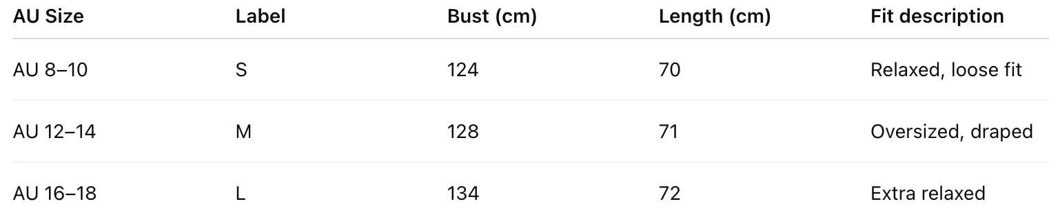 This piece is designed with a relaxed, draped fit.